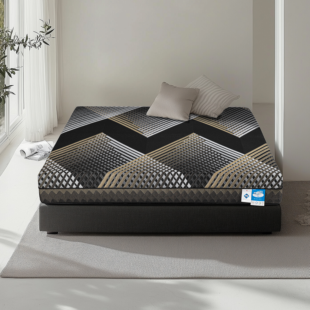 柔韧支撑,一夜安睡不翻身外套 :德国波迪 高克重针织面料 内套: 网眼布 内结构: Airflow ?-微循环Q弹绵 5cm Hi'energy Foam?强劲能量绵 10cm(异形切割ES2.0-2023) O2 ’Foam 9.0? 第9代氧气绵 9cm(异形切割ES2.1-2023)