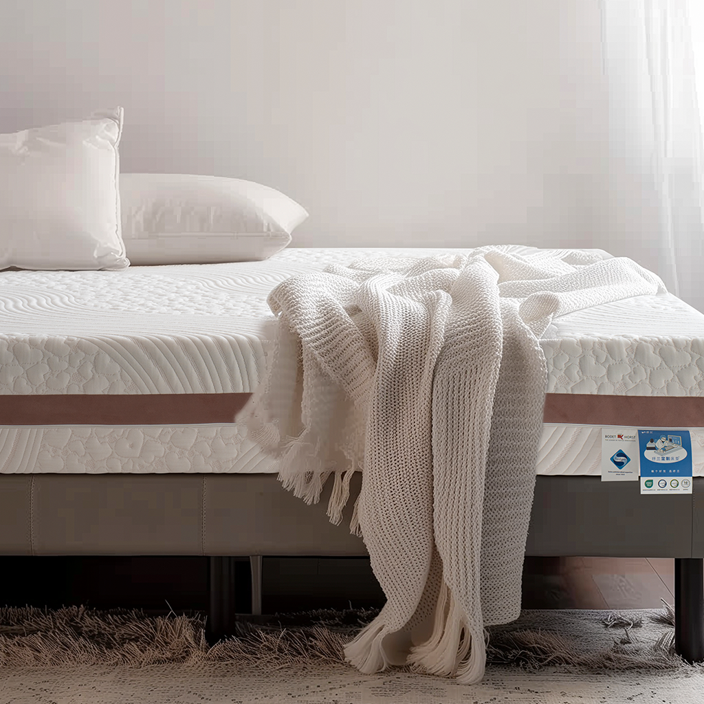 云朵包裹感,舒适睡感外套 :德国波迪 高克重针织面料 +OTE 麂皮绒梭织面料 +硅胶防滑底 内套: 网眼布 内结构: Gel'Memo core? 凝胶 ’非感温0压绵 3cm Gel'Memo core? 凝胶 ’非感温0压绵 4cm O2 ’Foam 8.0? 第8代氧气绵 5cm O2 ’Foam 9.0? 第9代氧气绵 14cm
