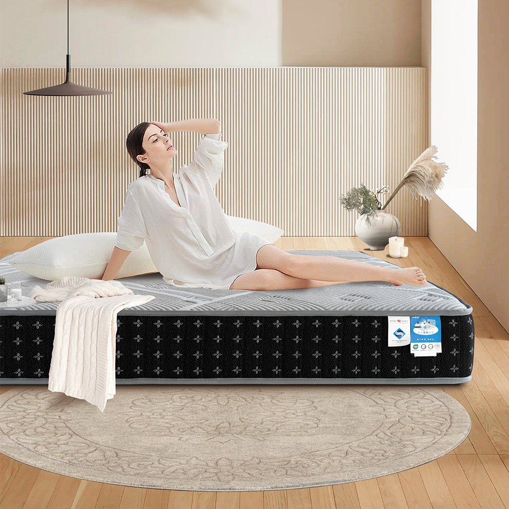 支撑力强,硬感爱好者首选裥棉层 :德国波迪 RUCO-THERM PCM 28? 针织面料 +抗菌高弹纤维 +1cmO2 ’Foam 8.0? 第8代氧气绵 +无纺布 内结构: Gel'Memo core? 凝胶 ’非感温0压绵 2cm O2 ’Foam 9.0? 第9代氧气绵(波浪型) 2cm 独立抗扰自适应弹簧系统 +边缘加固支撑系统 15cm