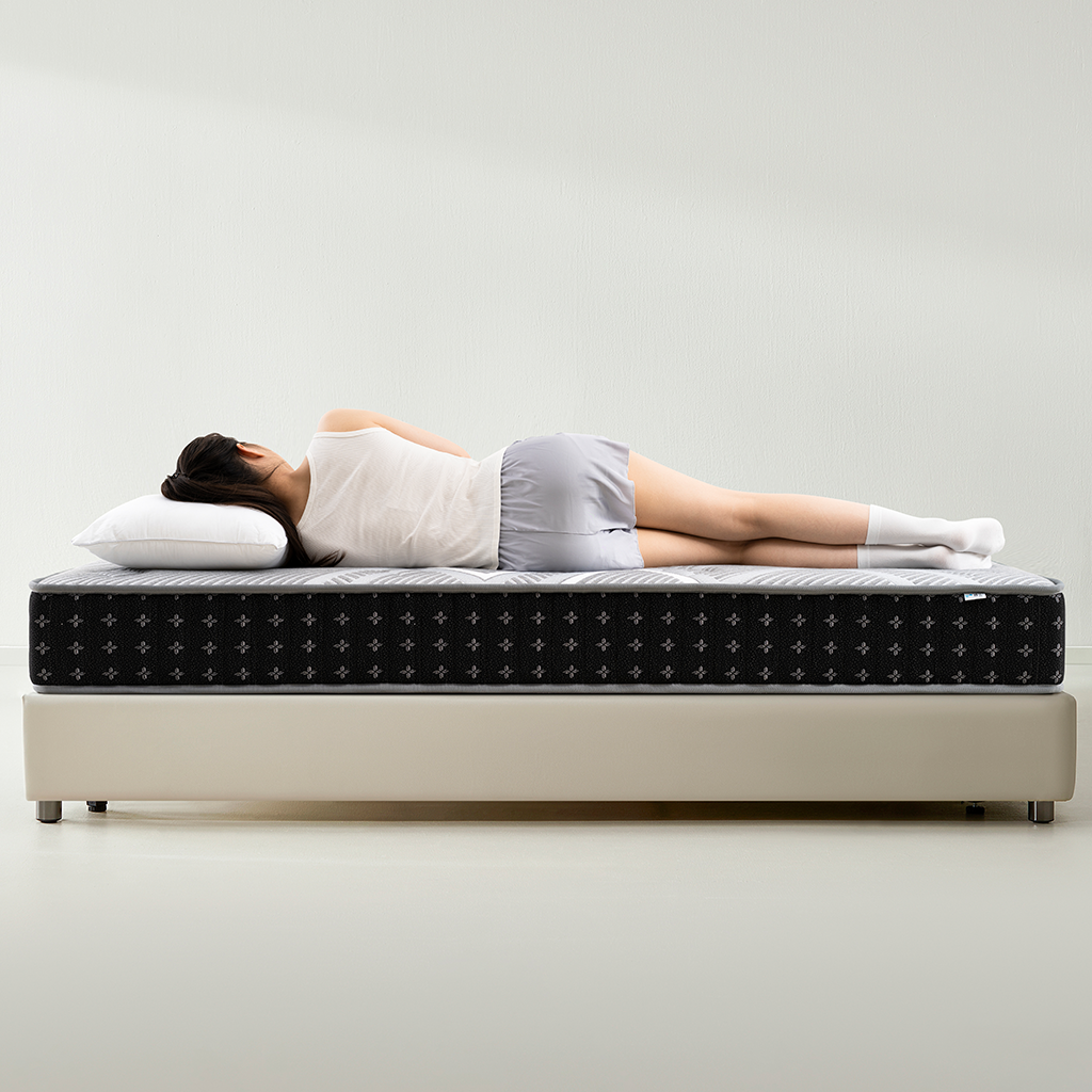 抗菌高弹纤维,舒适又透气裥棉层 :德国波迪 RUCO-THERM PCM 28? 针织面料 +抗菌高弹纤维 +1cmO2 ’Foam 8.0? 第8代氧气绵 +无纺布 内结构: Gel'Memo core? 凝胶 ’非感温0压绵 3cm O2 ’Foam 9.0? 第9代氧气绵(波浪型) 2cm 独立抗扰自适应弹簧系统 +边缘加固支撑系统 15cm