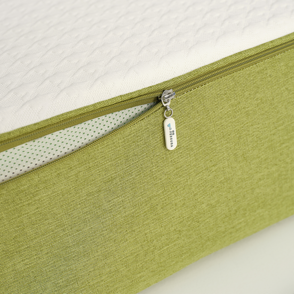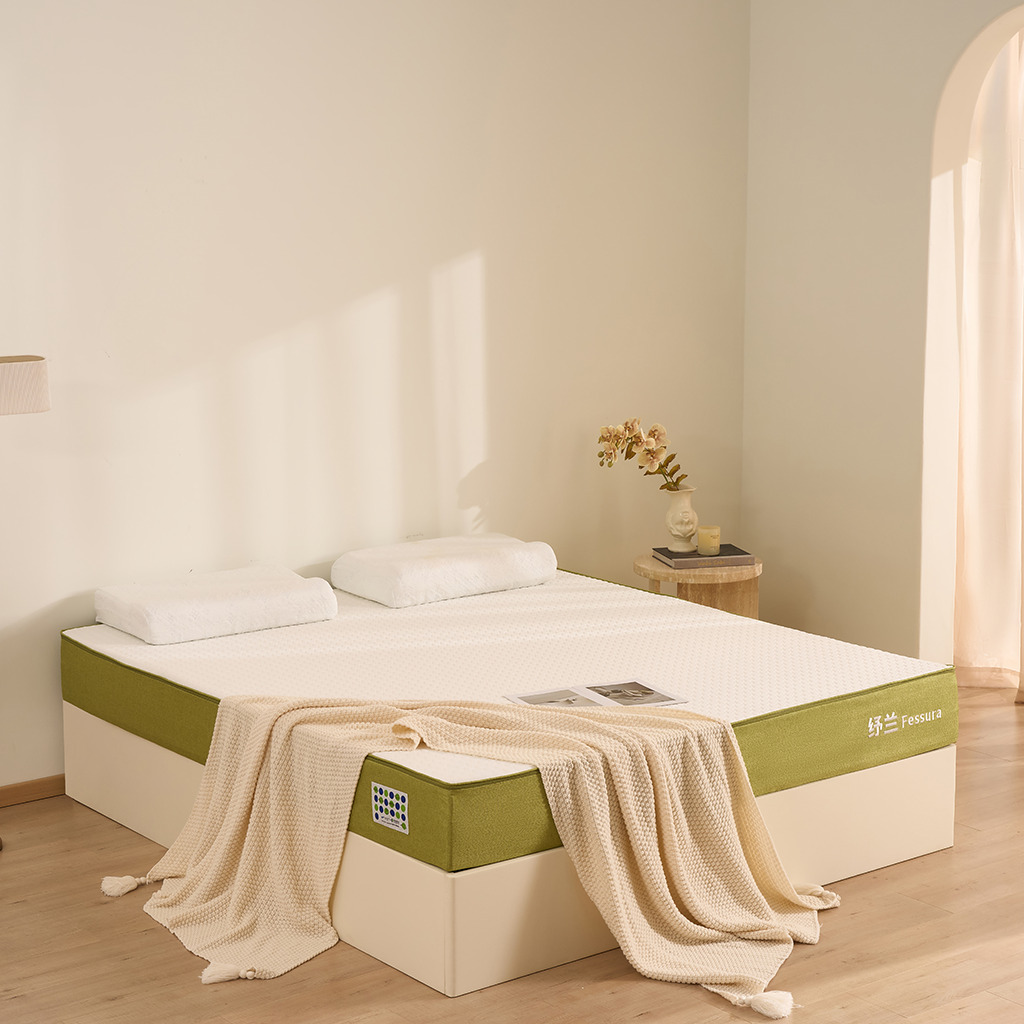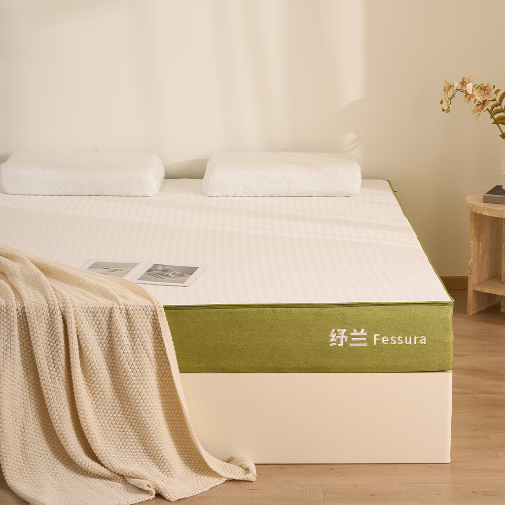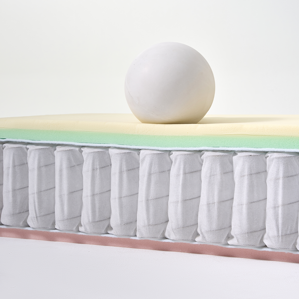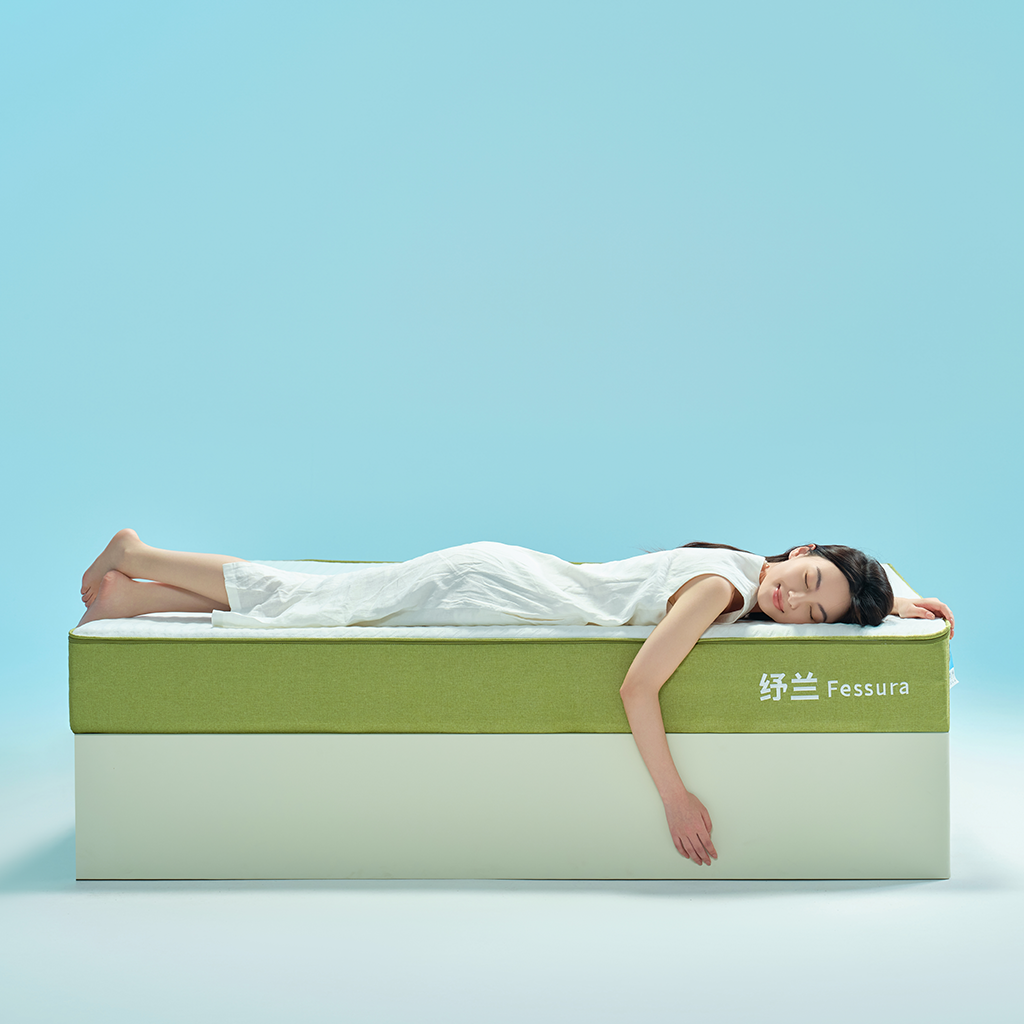 外套:普通针织面料+硅胶防滑底 内套:网眼布 内结构: 云呼吸慢回弹海绵? 2cm 植氧呼吸绵40N? 2cm 独立抗扰自适应弹簧系统 +边缘加固支撑系统 15cm O2’Foam 9.0? 第9代氧气绵 2cm